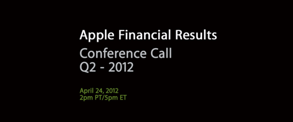 Apple gaat op dinsdag 24 april haar financiële resultaten van het tweede kwartaal van 2012 bekendmaken. Om 23:00 onze tijd is het mogelijk via deze link de conference call bij te wonen via een audio livestream. J.P. Morgan heeft alvast
